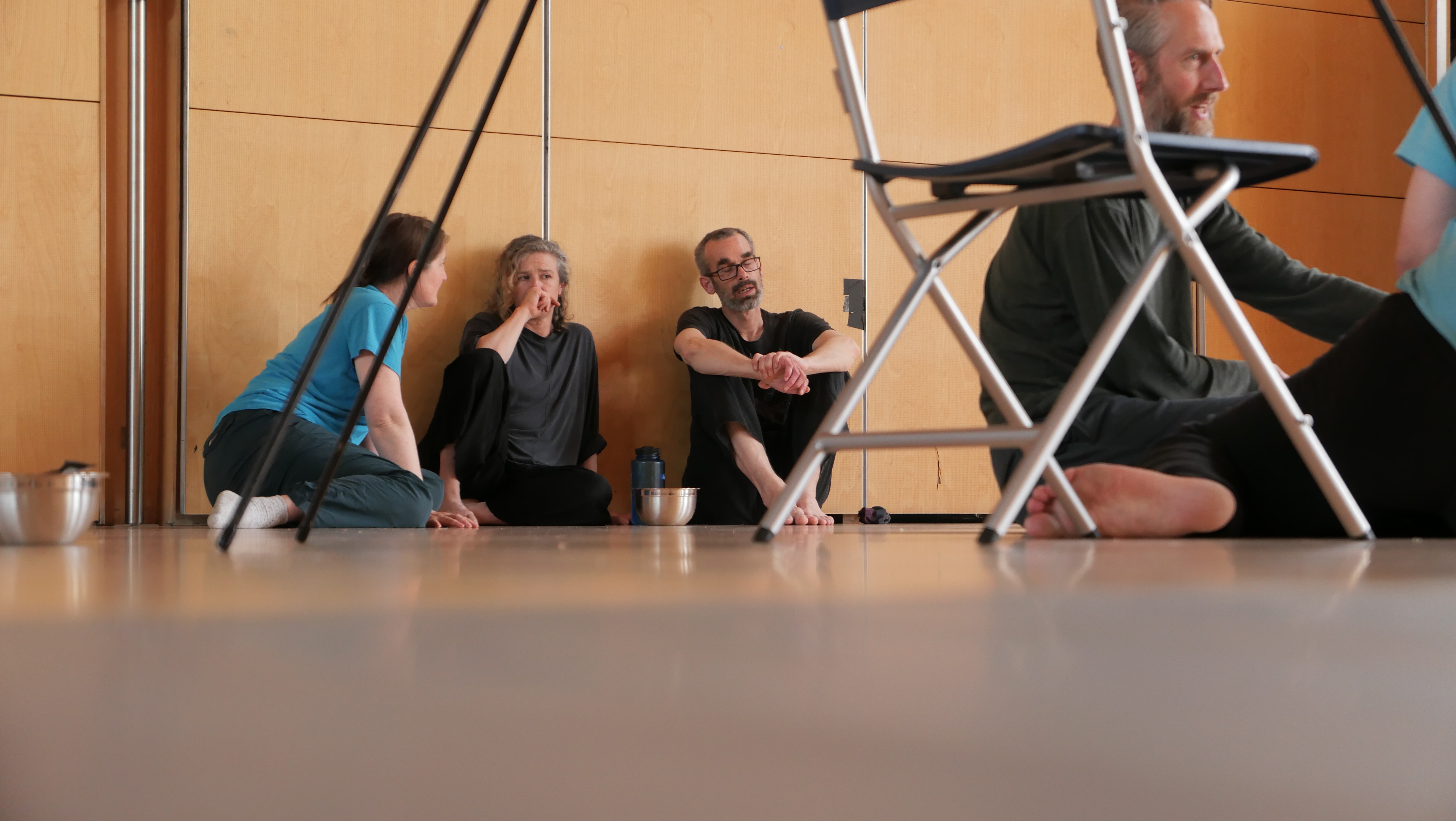 This workshop day shared this work’s exploration of ways of modulating ‘being oneself’ while being witnessed as a performer. Freeing from predetermined movement or action to guide the performance mode, participants worked to discern and connect the habitual and the intuitive, observing how their own live practice unfolded. This workshop practiced total immersion into the present, into the doing, into trust. The day was led by Jia-Yu Corti with contributions from scientific and artistic collaborators Albane Arthuis, Guido Orgs and Matthias Sperling.